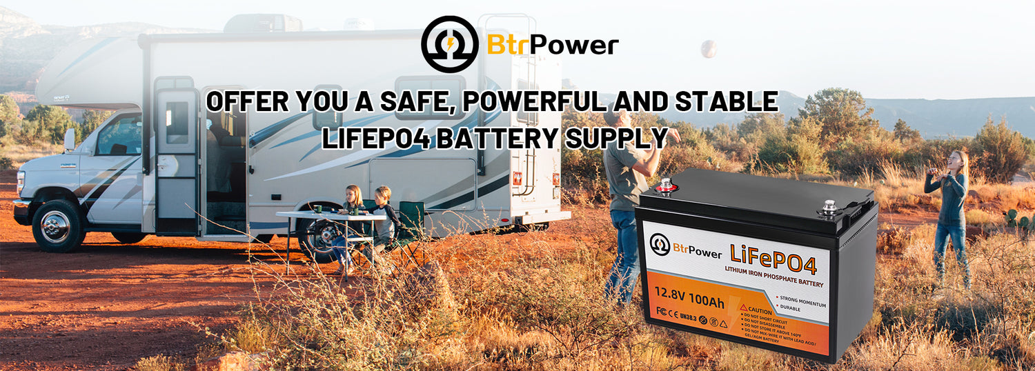BtrPower Lithium 24V 100Ah LiFePO4 Battery for RV Marine Solar System 100A BMS