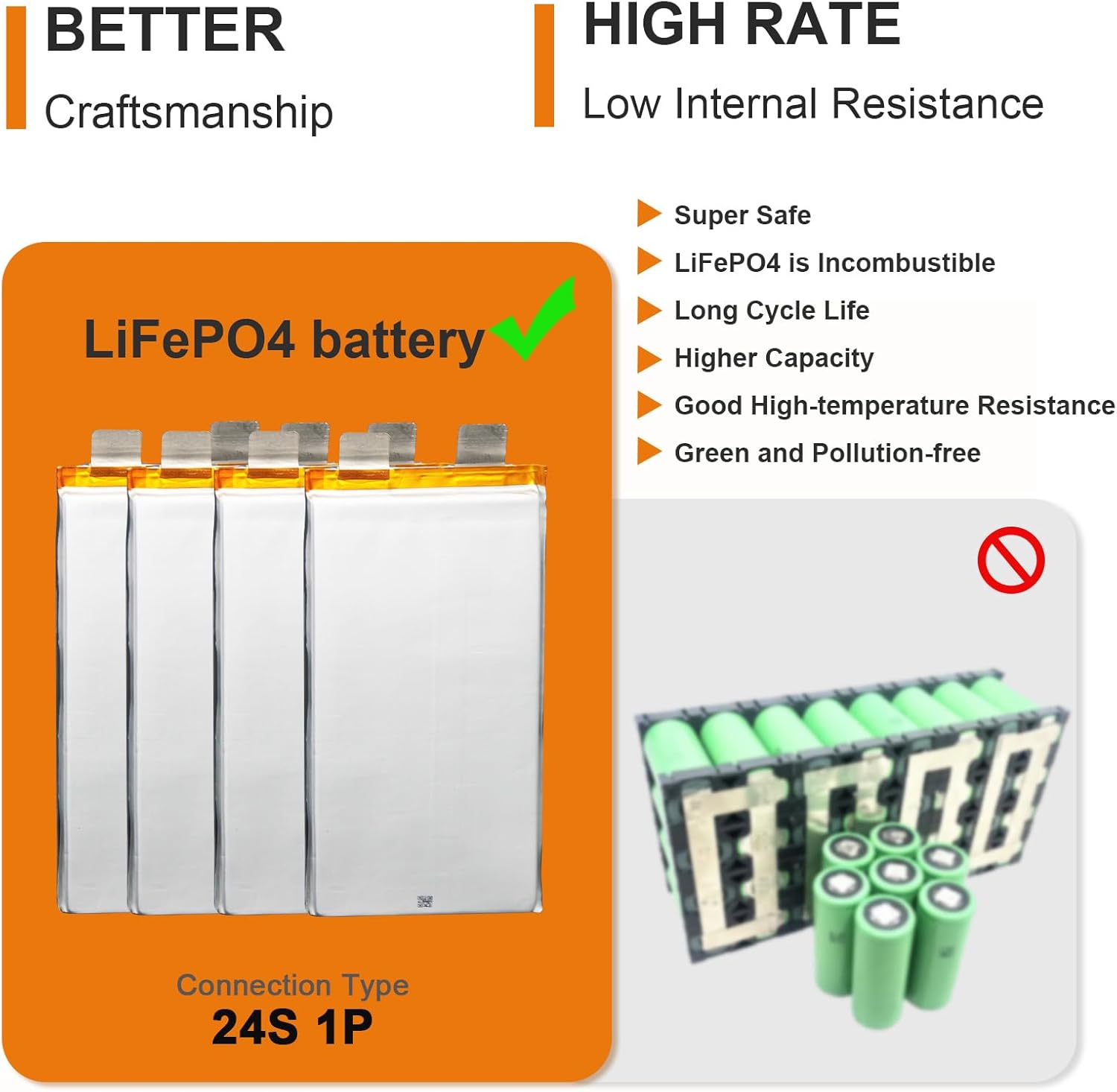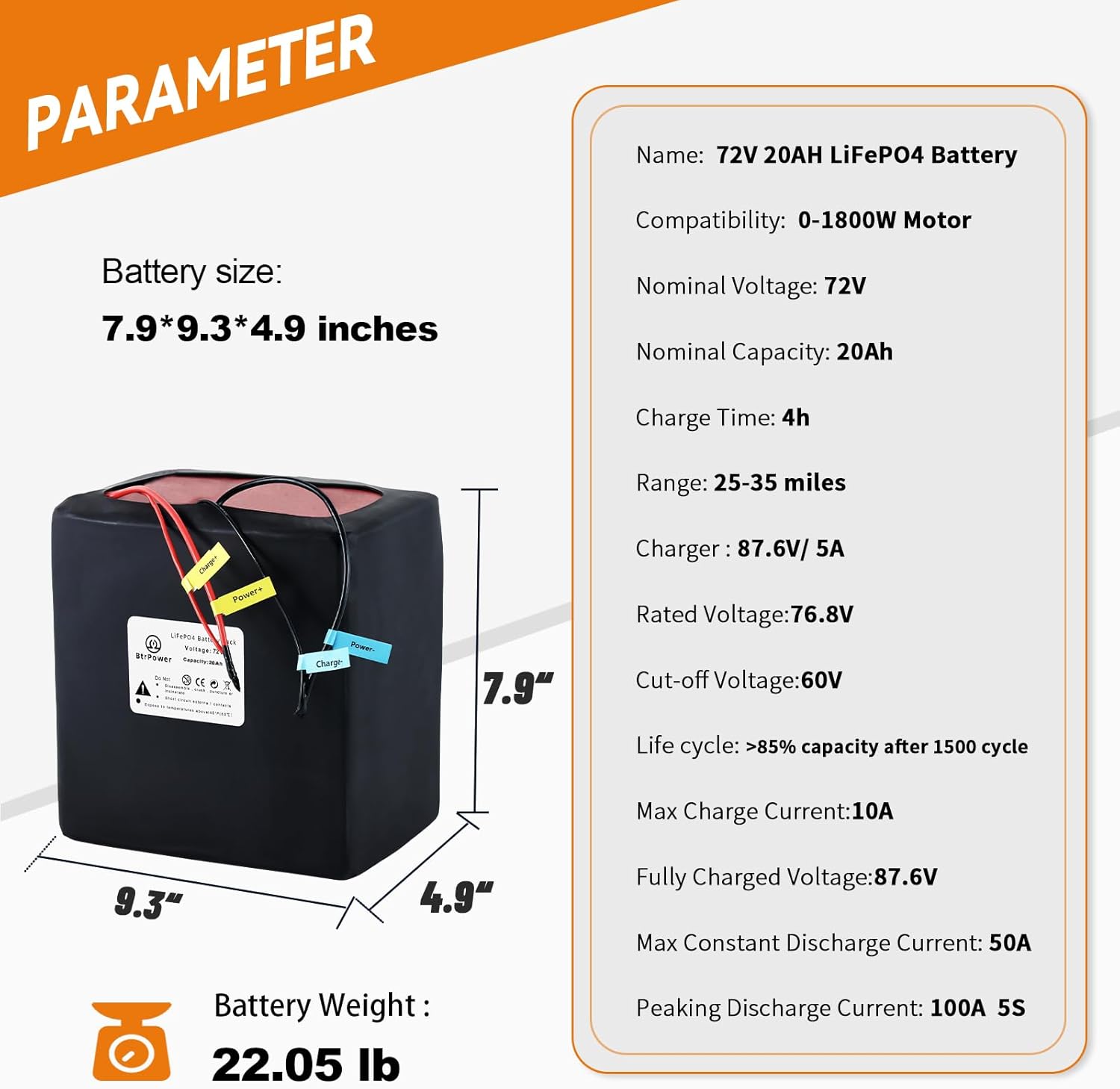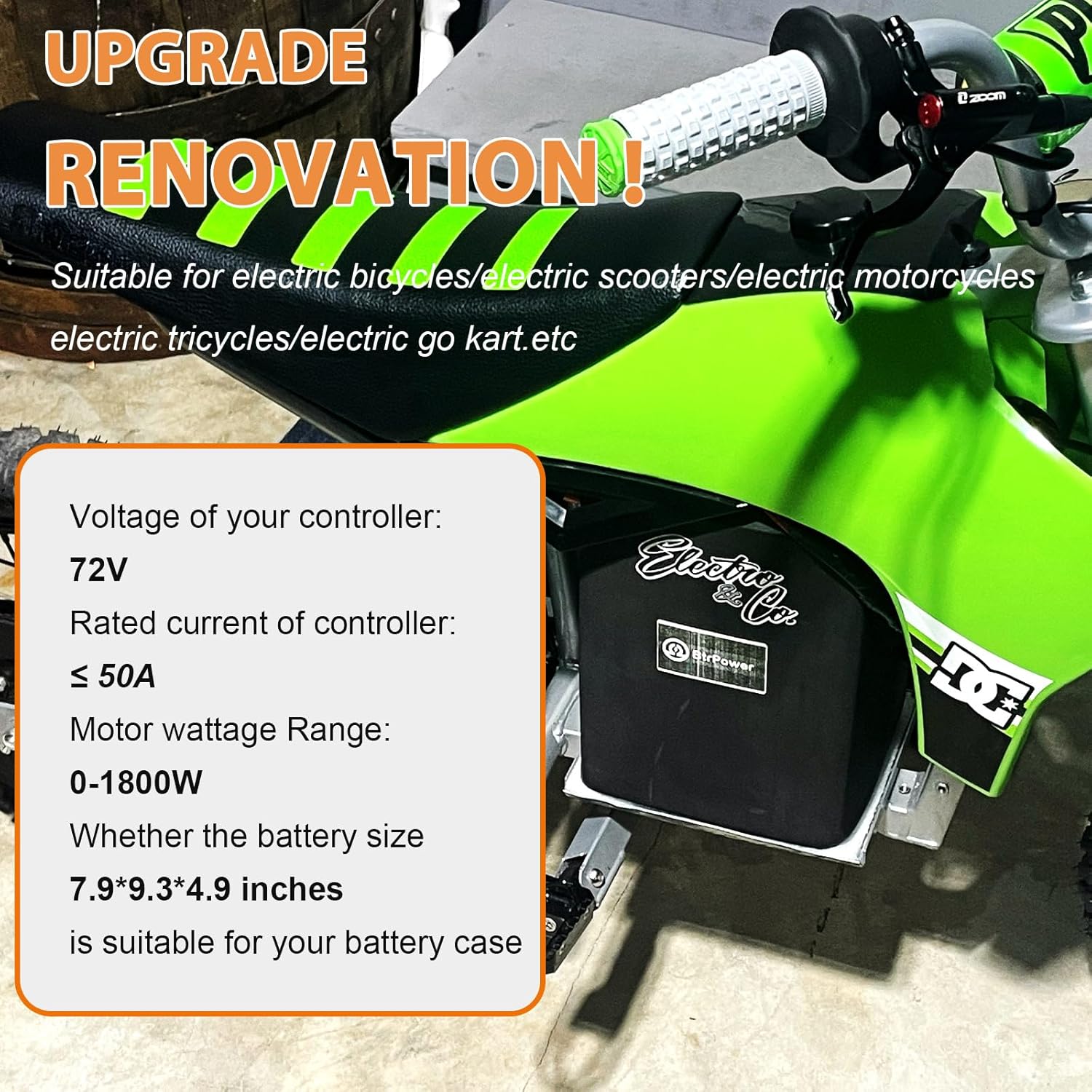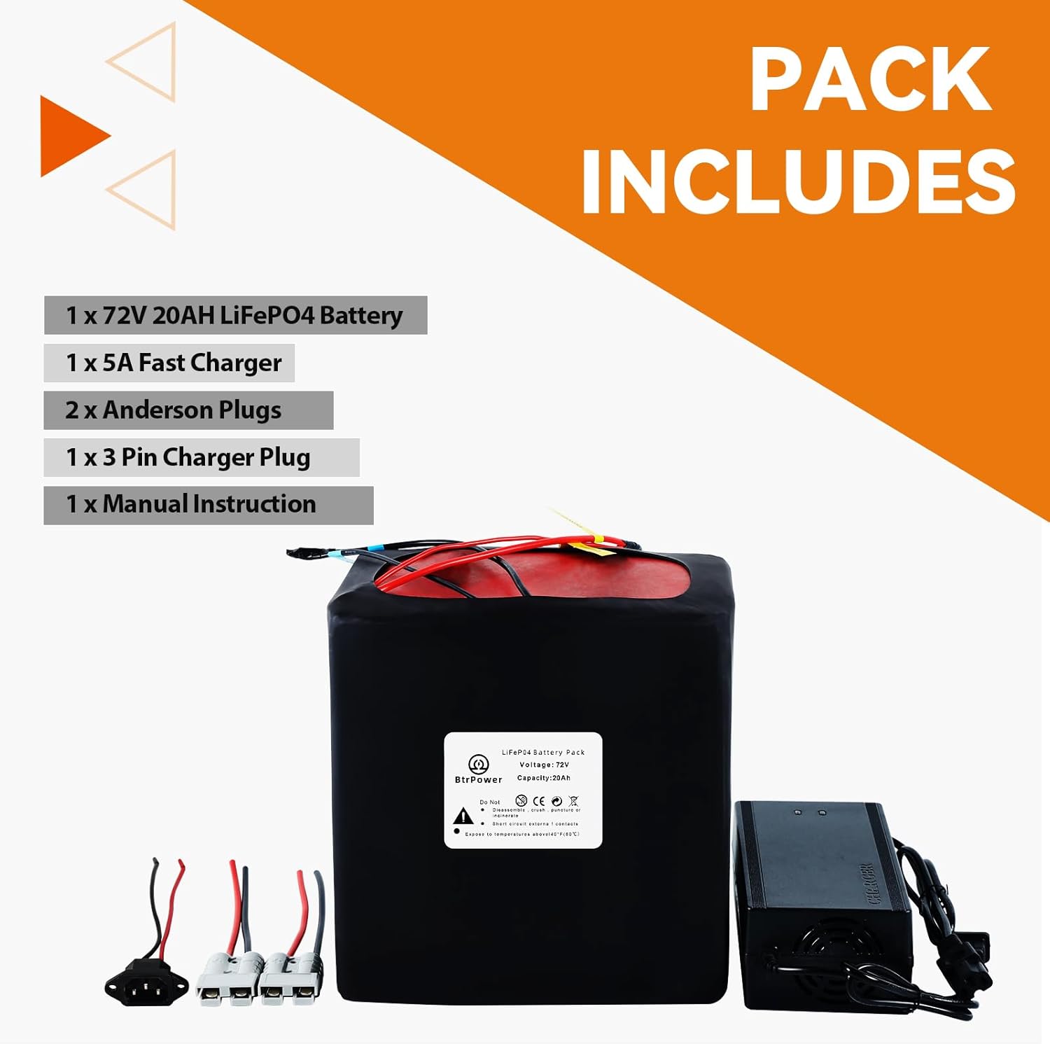 BtrPower Ebike Battery 72V 20AH LiFePO4 Battery Pack with 5A Charger 50A BMS