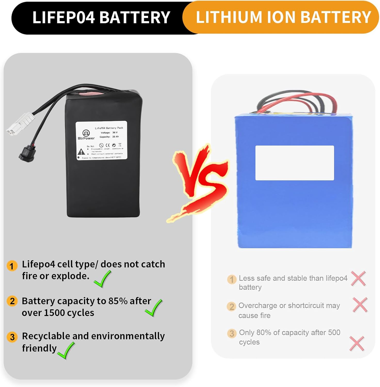- 1 paquete de baterías LiFePO4 de litio de 36 V y 25 AH