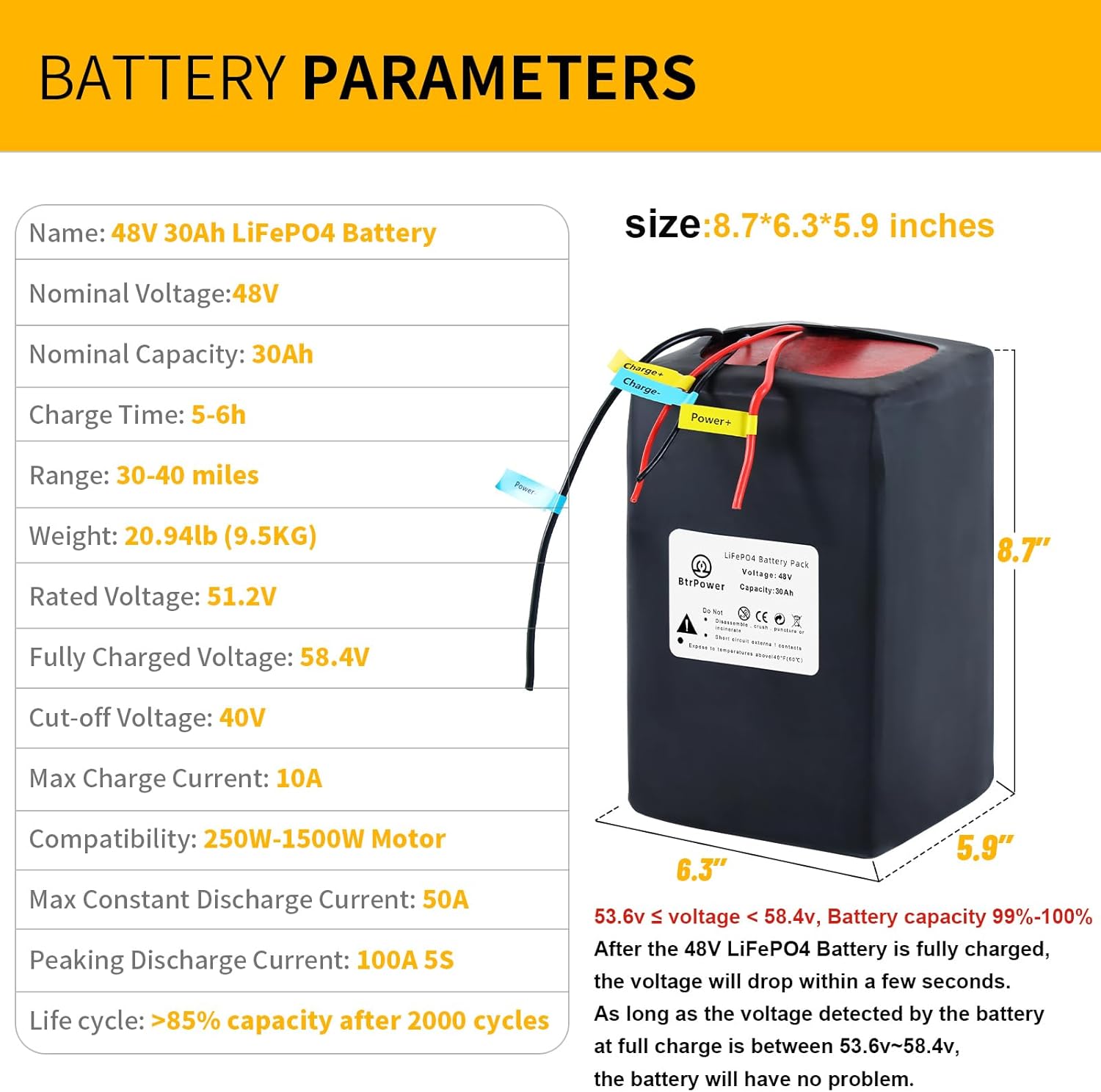 - La batería 48V 30AH LiFePO4 puede funcionar bien para el motor ebike 1000W-2500W