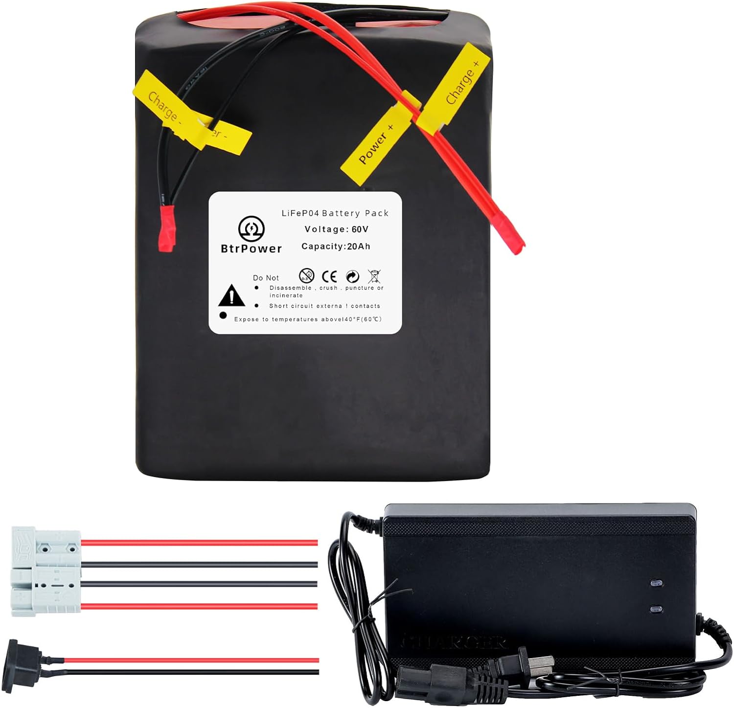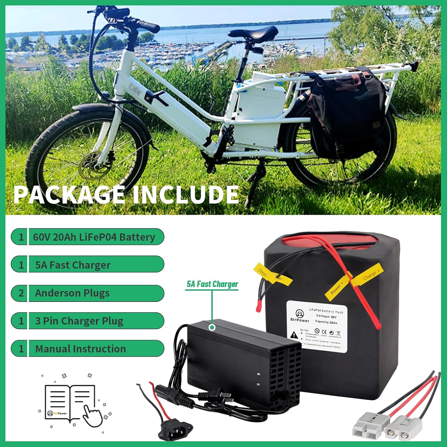 BtrPower Ebike Battery 60V 20AH LiFePO4 Battery Pack with 5A Charger ,50A BMS